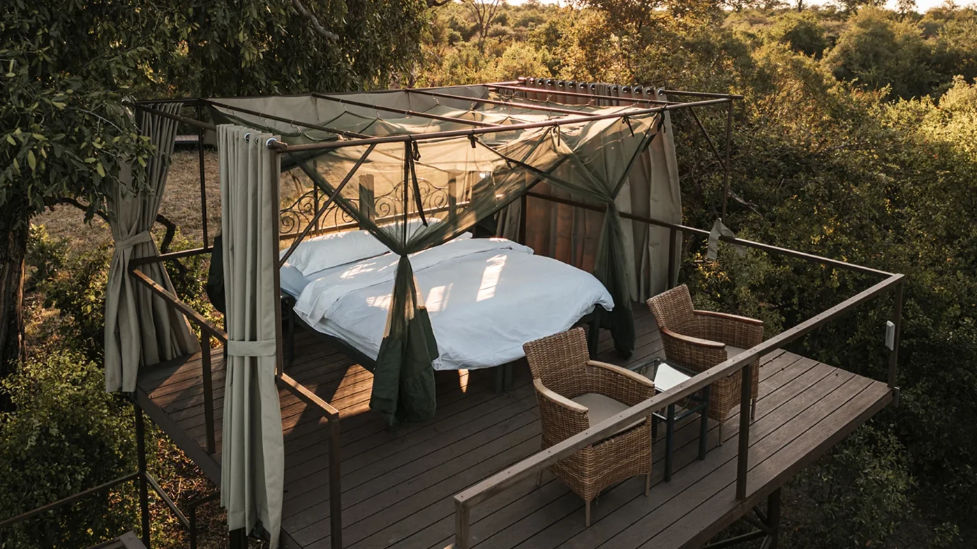 Situé dans une concession privée dans le parc national du Hwange, vous pouvez vous attendre à une certaine flexibilité dans toutes vos activités, y compris les safaris à pied et les safaris en 4x4 de jour et de nuit et l'observation rapprochée des animaux sauvages depuis une cachette. Les animaux que vous pourrez observer sont les éléphants, les kudus, les gnous, les antilopes sables, les zèbres, les oryx, les rares antilopes rouannes, les buffles, les girafes, les rhinocéros blancs, les lions, les léopards, les hyènes et bien d'autres encore. Durant la saison des pluies, le Kennedy Vlei est jonché de fleurs sauvages aux couleurs flamboyantes qui émergent à la première pluie et peuplé par d'abondants troupeaux de buffles, de zèbres et d'éléphants alors que l'herbe commence déjà à s'assécher.