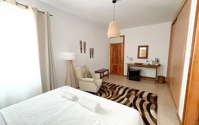 Arrivée, accueil et transfert en taxi privatif vers votre maison d’hôtes de charme à Praia, située dans le quartier de Achada Santo Antonio près de la plage de Quebra Canela. Installation dans votre chambre vue mer.