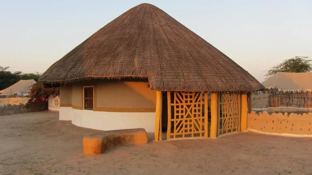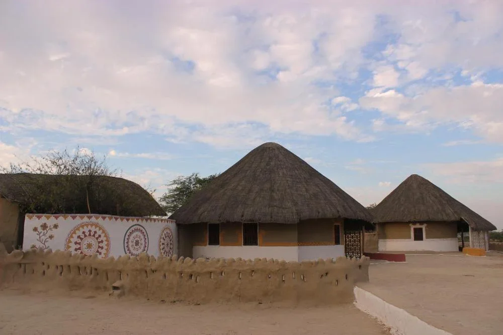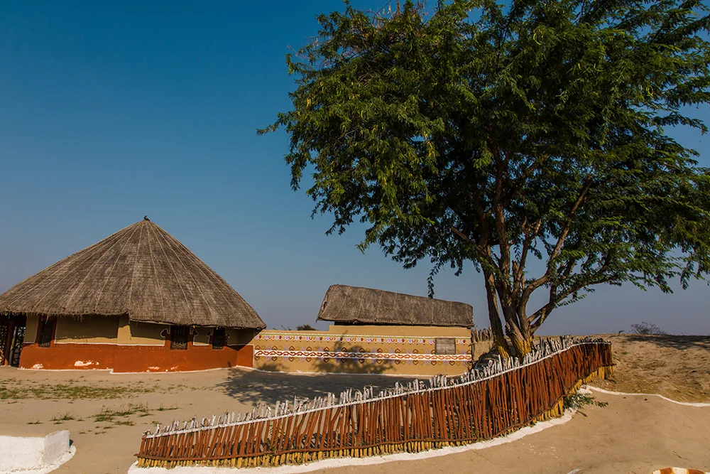 Le choix entre les villages de Sumrasar, Nirona, Bhirandiya, Dhordo ou Arhis est déterminées par les autorités. En cours de journée, un déjeuner est prévu dans un restaurant local. Dans le Banni, les villageois habitent des huttes circulaires appelées bhungas construites en terre glaise, elles conservent la fraîcheur en été et la chaleur en hiver. Retour à Bhuj, pour le dîner et la nuit à l'hôtel.