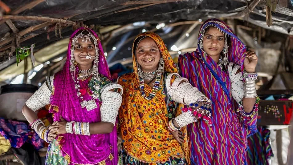 • La richesse des broderies muticolores des tenues portées par les dames des villages tribaux du Kutch