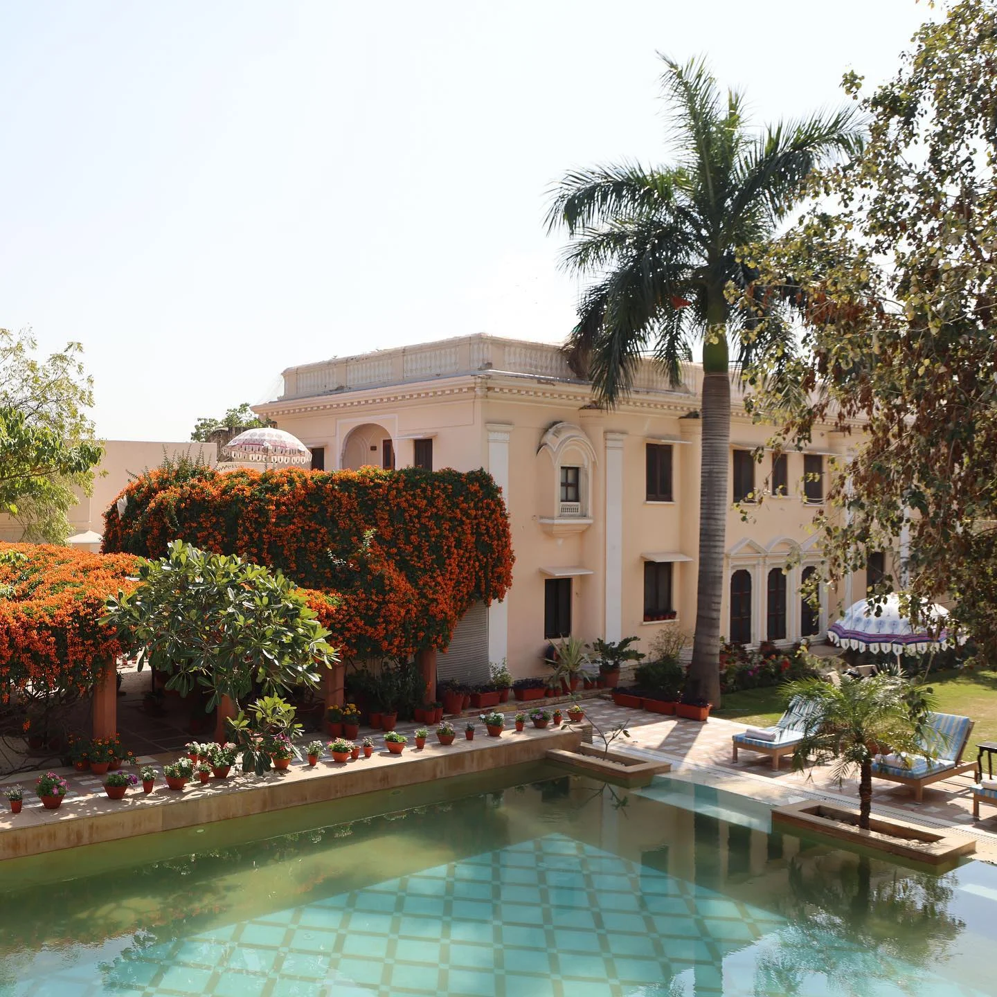 Matinée libre pour profiter du jardin et de la piscine. Déjeuner au Palais de Samode. Route en direction de la ville rose de Jaipur. Découverte du Hawa Mahal, le "Palais des Vents" et du palais du maharajah. Visite de l'observatoire astronomique de Jantar Mantar. Dîner libre.
