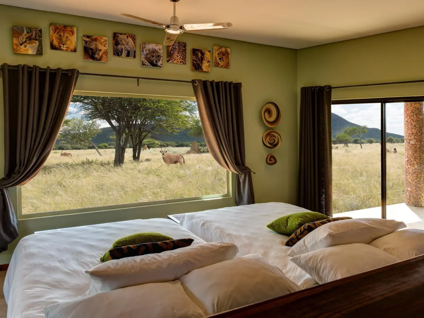 Départ en 4x4 ouvert pour une excursion dans la réserve du lodge (guide anglophone non privé). Petit-déjeuner puis route vers le Parc National d’Etosha (+-3h00). Installation et déjeuner libre. Safari en fin d’après-midi avec votre véhicule (possibilité de réserver les safaris avec guide et 4x4 du lodge en supplément). Etosha signifie en dialecte local « large étendue blanche ». Ce marais salant est un des plus remarquables du monde. Il occupe la partie centrale du parc. Sa coloration varie, selon les saisons et la quantité d’eau, du rose pâle au vert clair. Le parc comporte de nombreux points d’eau qui permettent l’observation de la faune en toute tranquillité : éléphants, rhinocéros, autruches, zèbres, gemsbok. Les fauves ne sont pas en reste : il est rare de ne pas voir de lions à Etosha ! Retour au lodge pour le repas du soir.