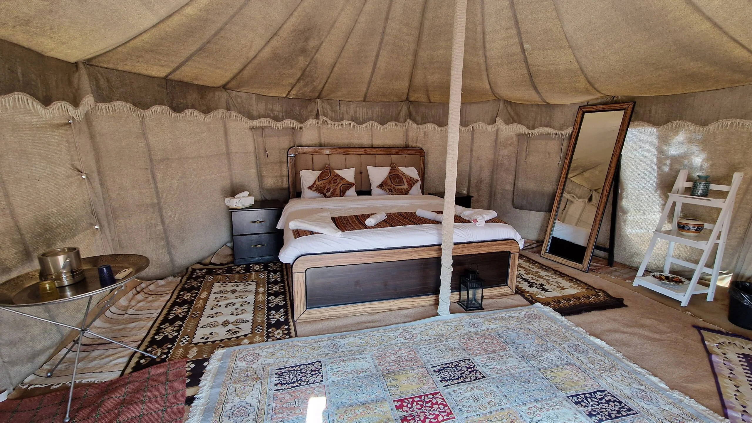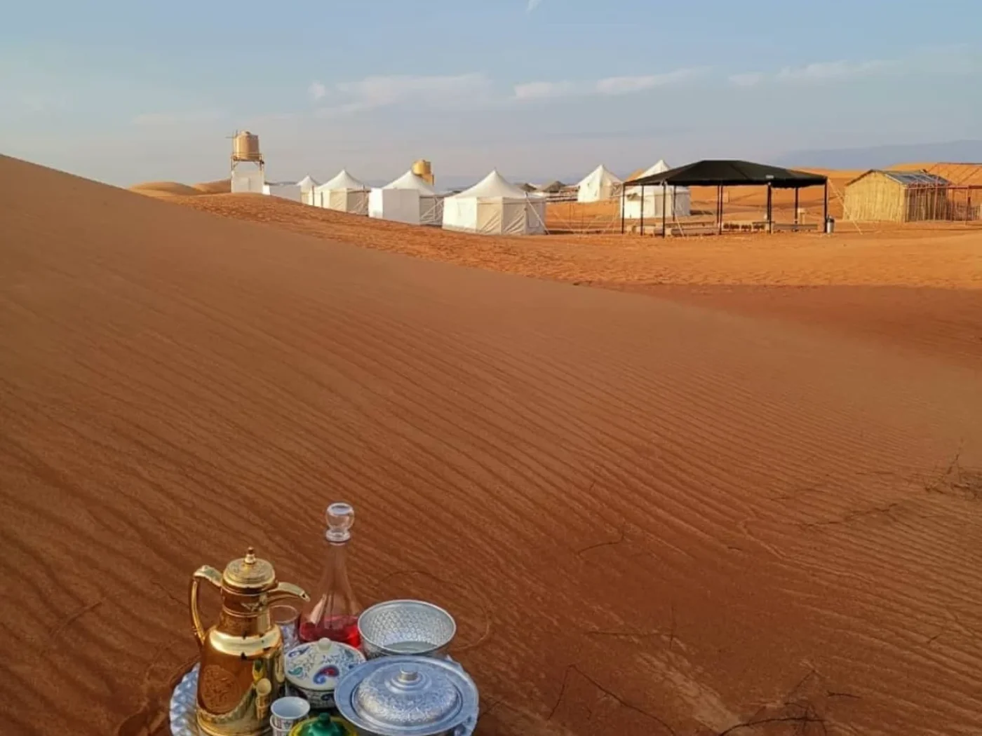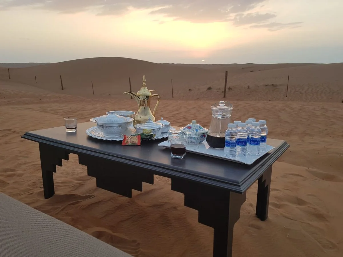 Vertrek naar het dorp Birkat al Mauz, dat zijn naam ontleent aan de oude bananencultuur die in het gebied floreerde. Vandaag de dag staat het dorp bekend om zijn prachtige palmbossen, weelderige tuinen en dadelpalmplantages, die samen een schilderachtig en groen landschap creëren doorkruist met talrijke falajs voor irrigatie. Maak een wandeling door de palmbossen en de steegjes van het dorp. Vervolg met een bezoek aan Nizwa, dat ooit de culturele hoofdstad van het land was en een belangrijk handelsknooppunt op de oude karavaanroutes. Met zijn unieke militaire architectuur heeft het fort van Nizwa een strategische rol gespeeld in de verdediging van de stad en de omliggende regio, als getuige van het militaire belang van de locatie tijdens de periode van de Yarubiden. Verken de soek, bekend als een van de oudste en meest authentieke van het land. U krijgt de kans om te communiceren met Omaanse verkopers en meer te leren over lokale gebruiken. Alleen op vrijdagochtend: ontdek de veemarkt waar veehouders hun kamelen, koeien en schapen meebrengen om ze aan de hoogste bieder te verkopen. Optioneel: bezoek aan het nieuwe Oman Across Ages Museum in Nizwa. Rit naar het oosten richting de Wahiba Sands-woestijn, waar het landschap radicaal verandert en plaatsmaakt voor uitgestrekte golvende duinen van okerkleurig zand, waar het nomadische leven van de bedoeïenen samenvloeit met de majesteit van de wilde natuur. Ontmoet een bedoeïenenfamilie in een traditioneel nomadenkamp, waar u hun eeuwenoude levensstijl kunt ontdekken. Overnachting in een kamp verscholen in het hart van de duinen, wat u onderdompelt in de sereniteit van de natuur in al haar pracht.Optionele activiteiten-