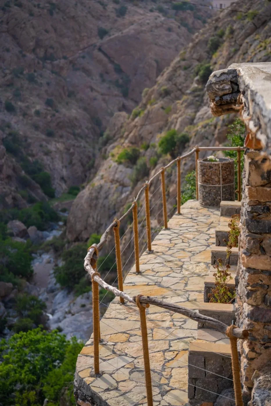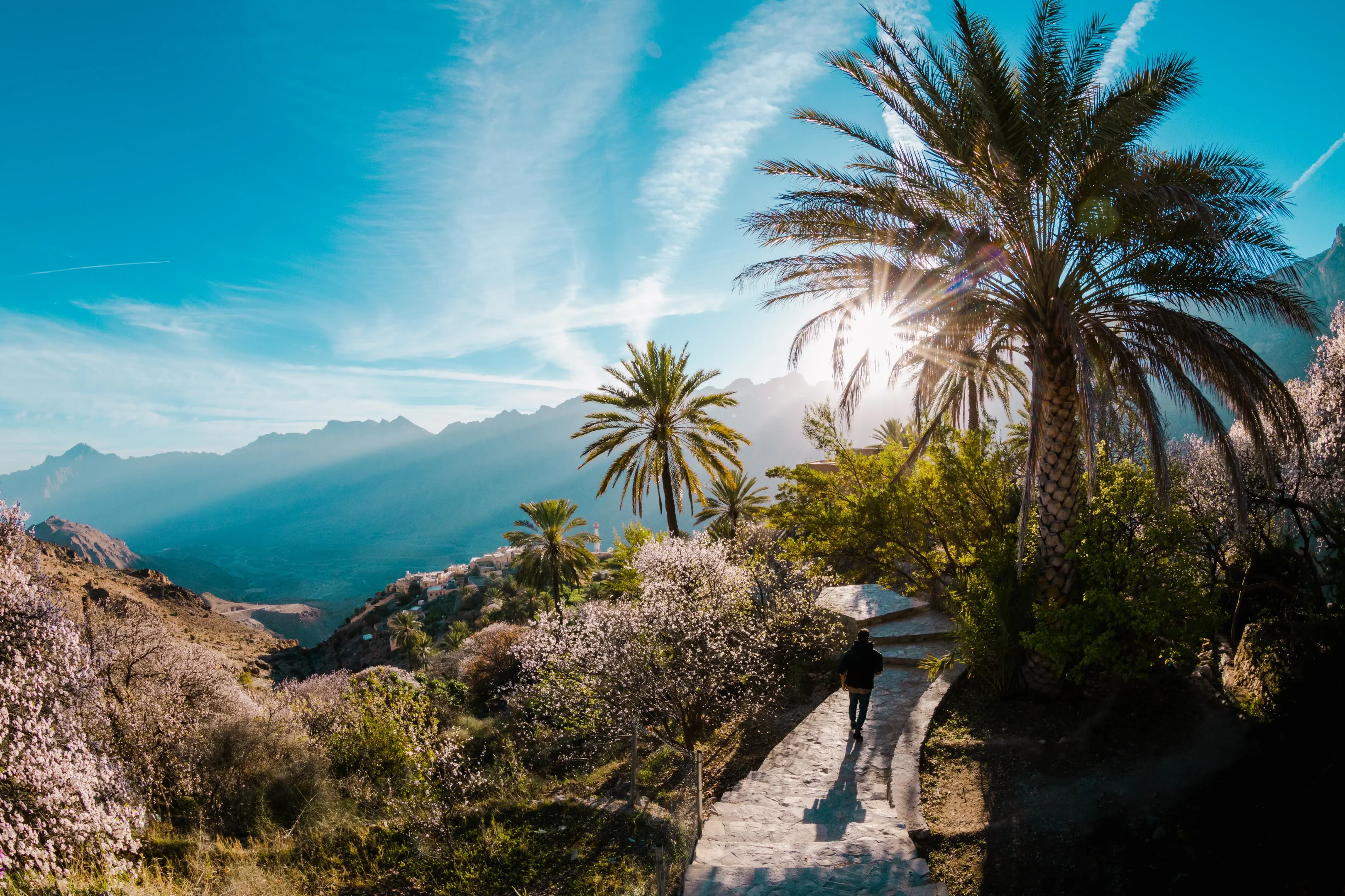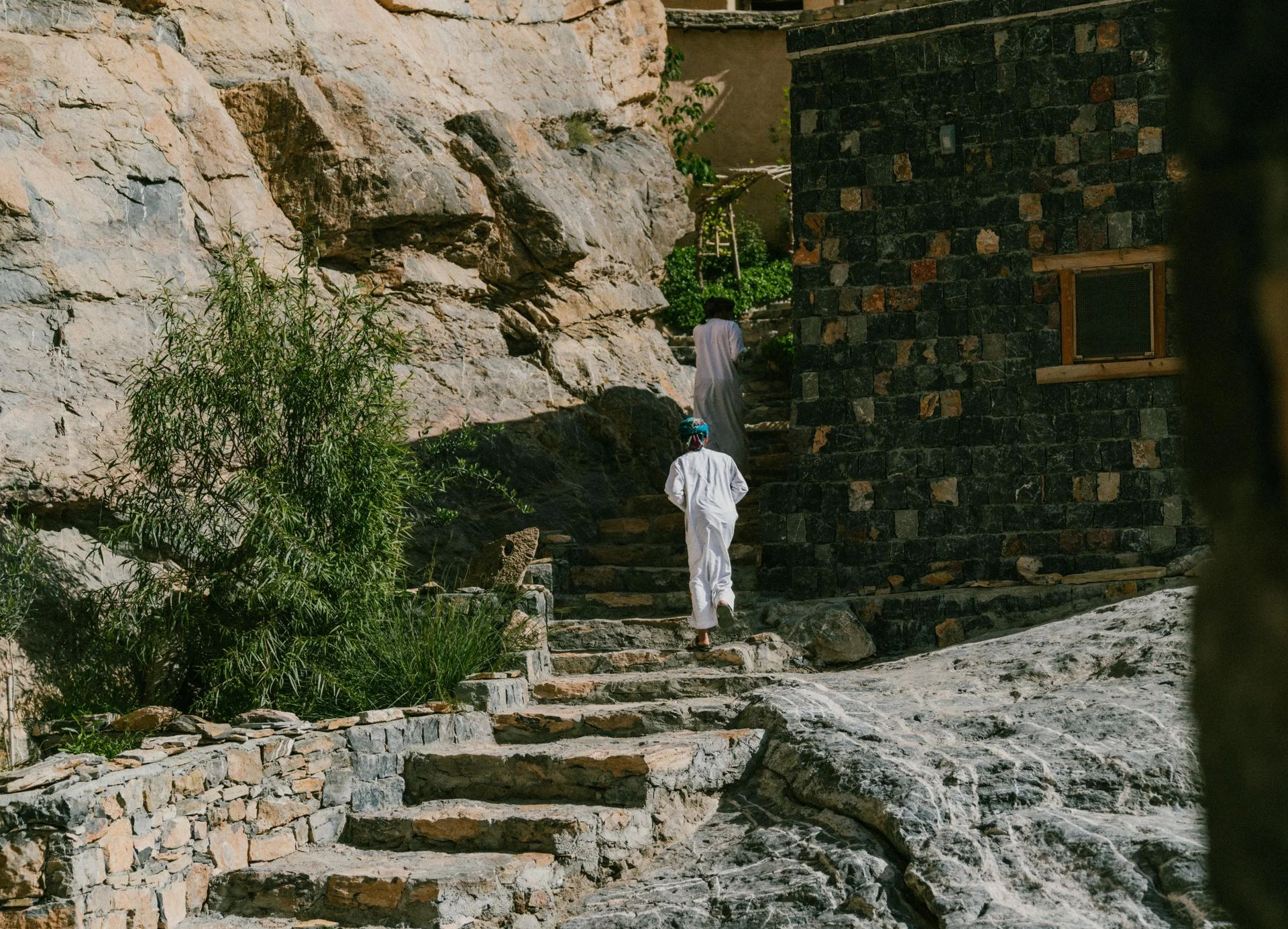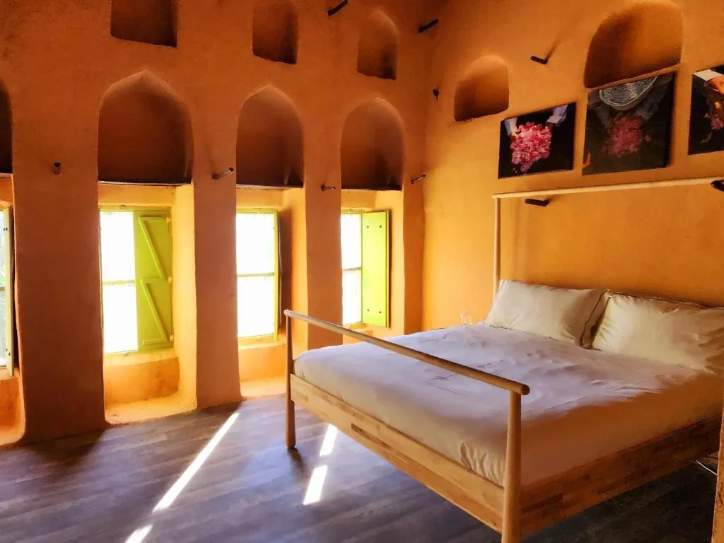 's Ochtends, wandeling door het naburige dorp Misfat Al Arbeein, dat tegen de bergwand ligt en omgeven is door weelderige palmbomen. Hier kunt u het falaj-systeem ontdekken, een traditioneel watervoorzieningssysteem dat het dorp van water voorziet en irrigatie mogelijk maakt. Keer terug naar de vlakte en stop bij de rots van Hasat Bint Sult, waar antropomorfe petrogliefen zijn gegraveerd die teruggaan tot de pre-islamitische tijd. Bezoek het Bahla-fort, dat op de werelderfgoedlijst van UNESCO staat. Dit historische monument, gebouwd in de 13e eeuw, is een van de oudste en best bewaarde forten van het sultanaat, met indrukwekkende lemen muren, wachttorens en meerdere binnenplaatsen, smalle doorgangen en historische kamers. Ontdek een traditionele pottenbakkerij. Bahla staat bekend om zijn pottenbakkers die dit ambacht al generaties lang voortzetten. U krijgt de kans om verschillende technieken van kleimodellering, pottenbakken en decoratie toe te passen. Een mooie gelegenheid om gepassioneerde lokale ambachtslieden te ontmoeten en een belangrijk aspect van de rijke Omaanse cultuur te ontdekken. Iets verderop werd het kasteel van Jabrin gebruikt als koninklijke residentie onder de Yarubid-dynastie in de 17e eeuw. Vandaag de dag kunt u er fijn gesneden en beschilderde plafonds bewonderen, kleurrijke muurschilderingen, ramen van uitgesneden gips... De prachtig bewaarde binnenruimtes omvatten ook audiëntiezalen, bibliotheken, vergaderzalen en woongedeeltes die getuigen van de pracht en verfijning van die tijd. Vervolgens gaat u naar de Jabal Akhdar, de Groene Berg, op 2000 meter hoogte. U verblijft in een afgelegen B&B op een klif met uitzicht op de Hajar-vallei met een adembenemend uitzicht op de bergen en oases. Uw accommodatie is een oud dorp dat door de bewoners is omgebouwd tot smaakvolle gastenkamers met respect voor lokale tradities. Onbereikbaar met de auto, een gemakkelijk wandelpad (700 meter) geeft toegang tot de plek. Authenticiteit en ontkoppeling verzekerd!
