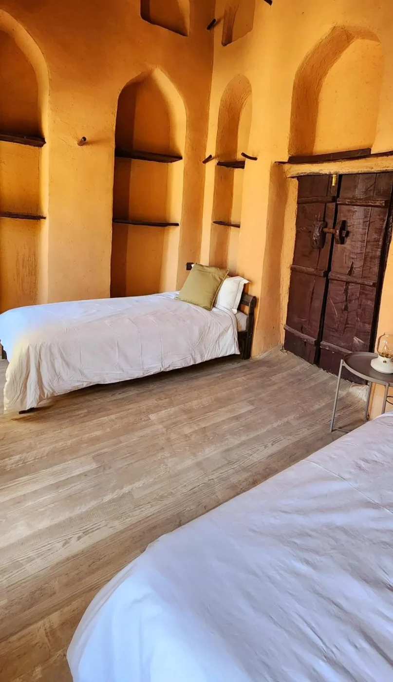 Na het ontbijt ontdekt u de vismarkt langs de corniche van Muscat. Vervolgens gaat u naar de Batinah-vlakte en de Wadi Al Abyad (de Witte Vallei), een brede bergachtige en ondiepe rivierbedding bezaaid met kiezelstenen en dadelpalmen. De wadi eindigt in kleine bassins met opvallend parelwit water, bezocht door kolonies rode libellen. Maak een wandeling door de wadi. De rotsen van de Wadi Al Abyad-canyon hebben ook aanzienlijke geologische betekenis, met veel aanwijzingen over de interne structuur van de aarde. Picknicklunch in de wadi. Vervolgens naar Nakhal en bezoek aan het spectaculaire fort, gebouwd in de 17e eeuw boven op een rotsachtige heuvel, met panoramisch uitzicht op de pittoreske omgeving. Het fort is zeer goed bewaard gebleven en u kunt de binnenste kamers, smalle gangen en historische wachttorens verkennen. Het bezoek biedt een boeiend inzicht in de politieke, militaire en architecturale geschiedenis van het sultanaat. Daarna gaat u naar de Ghubrah-depressie en het dorp Wakan voor een authentieke en meeslepende ervaring in de cultuur van de bergdorpen. Maak een wandeling langs de falaj en traditionele waterreservoirs naar een opmerkelijk uitkijkpunt met uitzicht op de omliggende bergen. Diner en overnachting in een charmante accommodatie bestaande uit gerestaureerde traditionele huizen in het dorp (eenvoudig comfort).Wakan - Wadi Bani Awf - Bilat Sayt - Al HamraDag 04