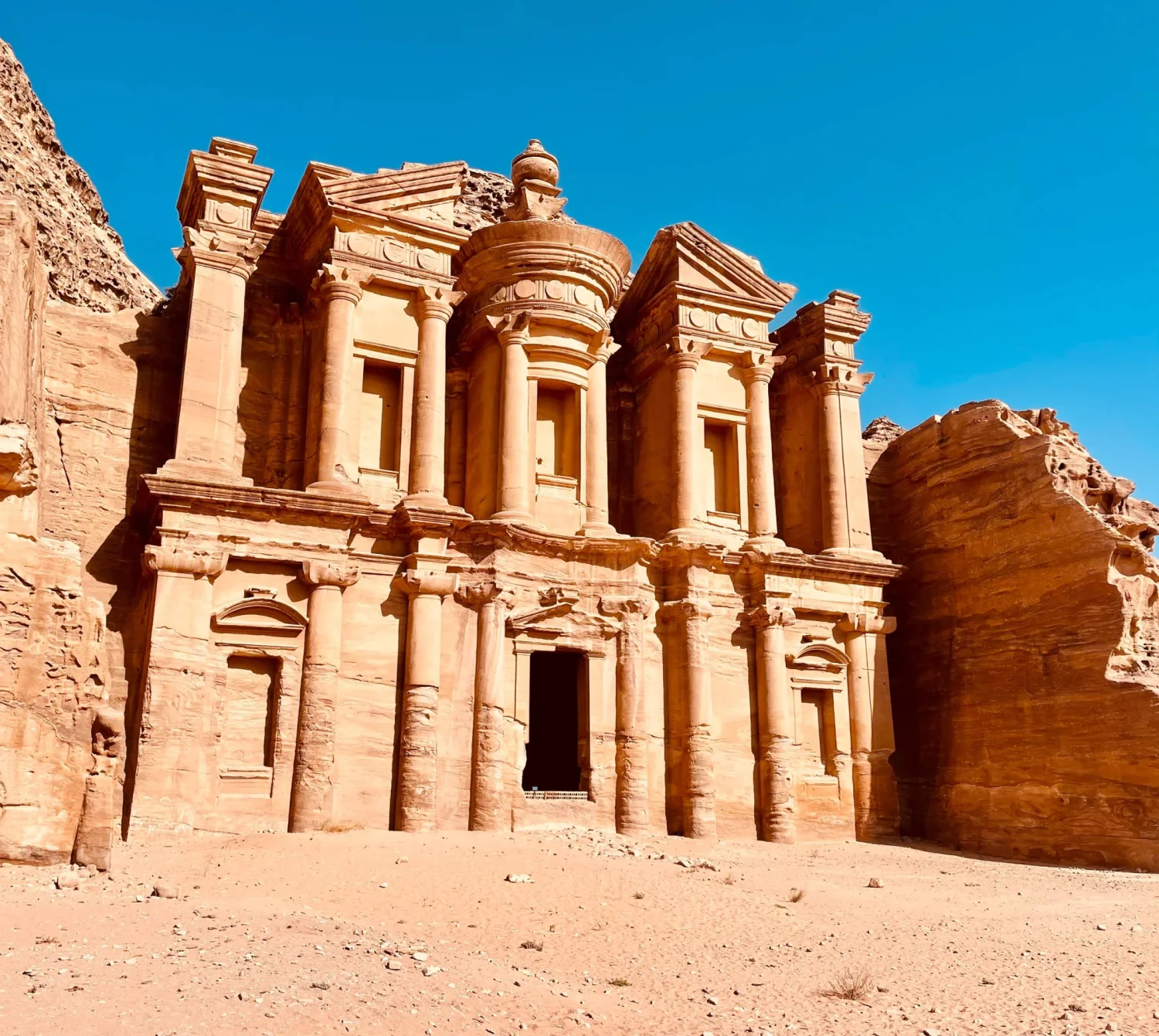 Visite du Mont Nébo, mentionné dans la Bible et considéré comme le lieu où Moïse, interdit d'entrer en Terre Promise, observa le Pays de Canaan, avant d'y mourir. Pour beaucoup, il s'agit du lieu où se trouverait sa tombe. Culminant à 840 mètres d'altitude, le Mont Nébo offre une vue sur la Mer Morte, Jéricho et Jérusalem par temps dégagé. Visite à Madaba de l'église St Georges qui abrite une mosaïque du 6e siècle qui présente une carte très détaillée du couloir syro-palestinien et du Nord de l'Egypte à l'époque byzantine. Déjeuner et route vers Kérak à travers les sublimes paysages montagneux de la célèbre Route des Rois, voie commerciale empruntée depuis la plus haute antiquité. Visite du château de Kérak, appelé le Krak des Moabites par les Croisés à qui l'on doit l'essentiel des vestiges actuellement visibles. Construit au 12e siècle, ce fort est un magnifique témoin de l'architecture croisée et du chapelet défensif érigé sur les voies d'accès à Jérusalem. Route vers Pétra. Dîner et nuit à Pétra.PétraJour 04
