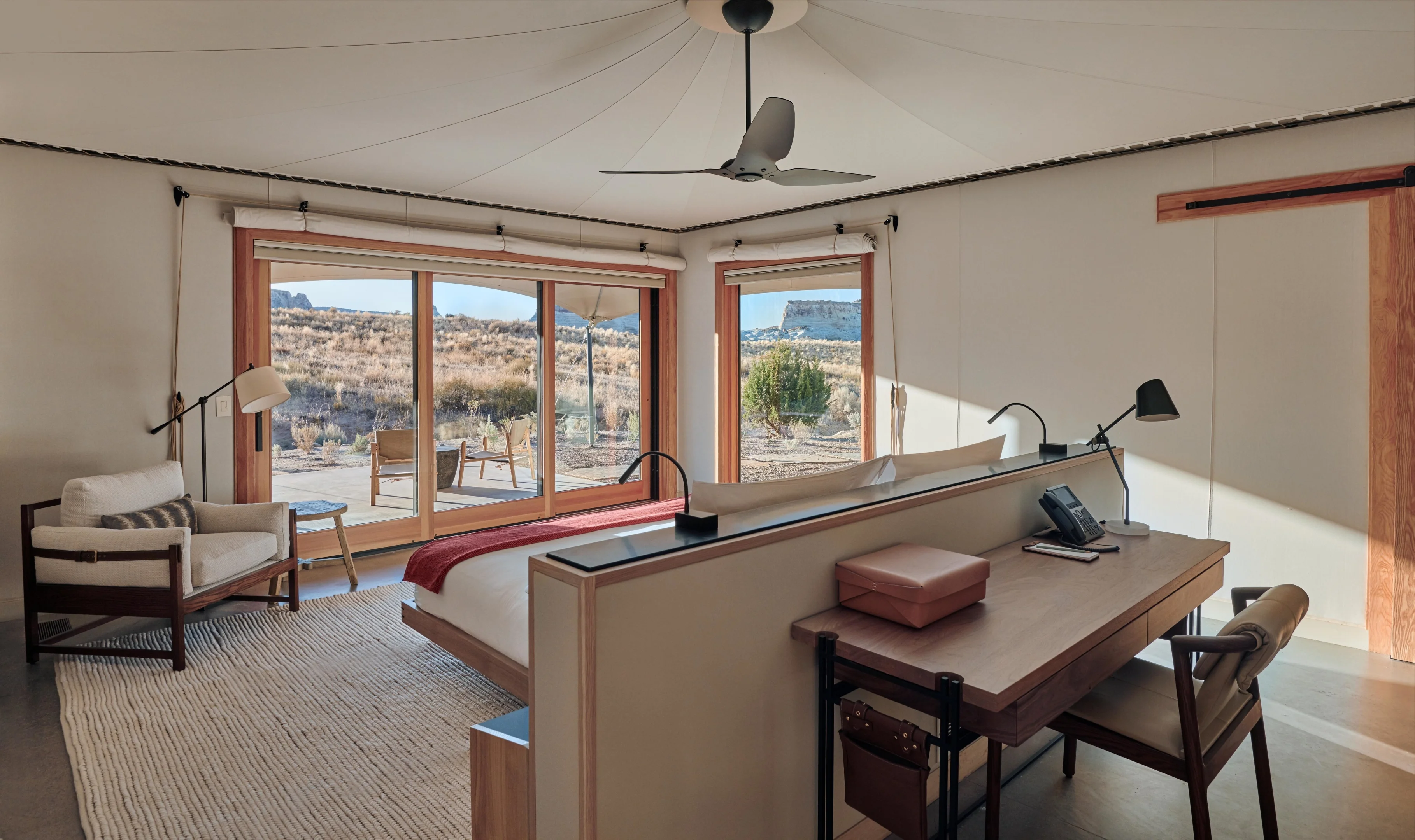 HébergementsDormez en pleine nature, mais avec tout le confort possible. À l'intérieur d'un Airstream intemporel, vous trouverez un salon lumineux et aéré et une kitchenette entièrement fonctionnelle. Dans la chambre, un lit queen avec des draps de qualité supérieure est niché sous une fenêtre panoramique. Le canapé-lit se transforme en lit double, parfait pour un adulte ou deux petits enfants. Une salle de bains privée moderne offre une douche à l'italienne à effet pluie et un grand coin vanité. À l'extérieur, détendez-vous avec un verre de vin sur votre terrasse privée, qui comprend un foyer et un coin repas.