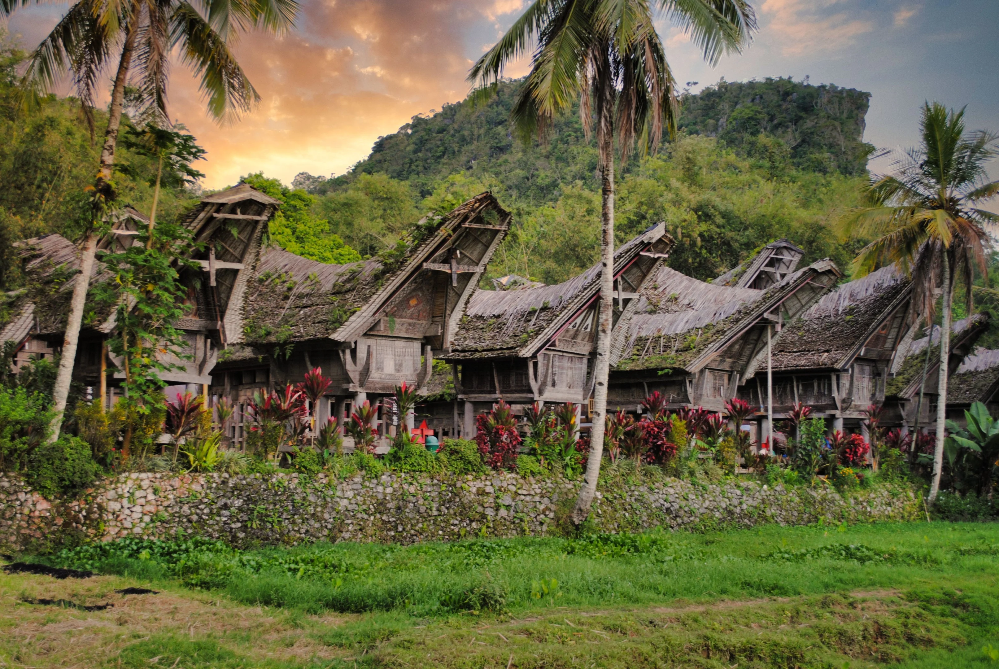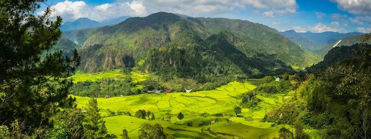 Visite du magnifique village de Batutumonga aux tongkonans majestueuses sur les flancs du mont Gunung Sesean, et du village de Tinimbayo. Agréable promenade (environ 1 h) à travers les rizières en terrasses, les forêts de bambous, les plantations de cafés et les hameaux traditionnels à l'écart des sentiers battus.