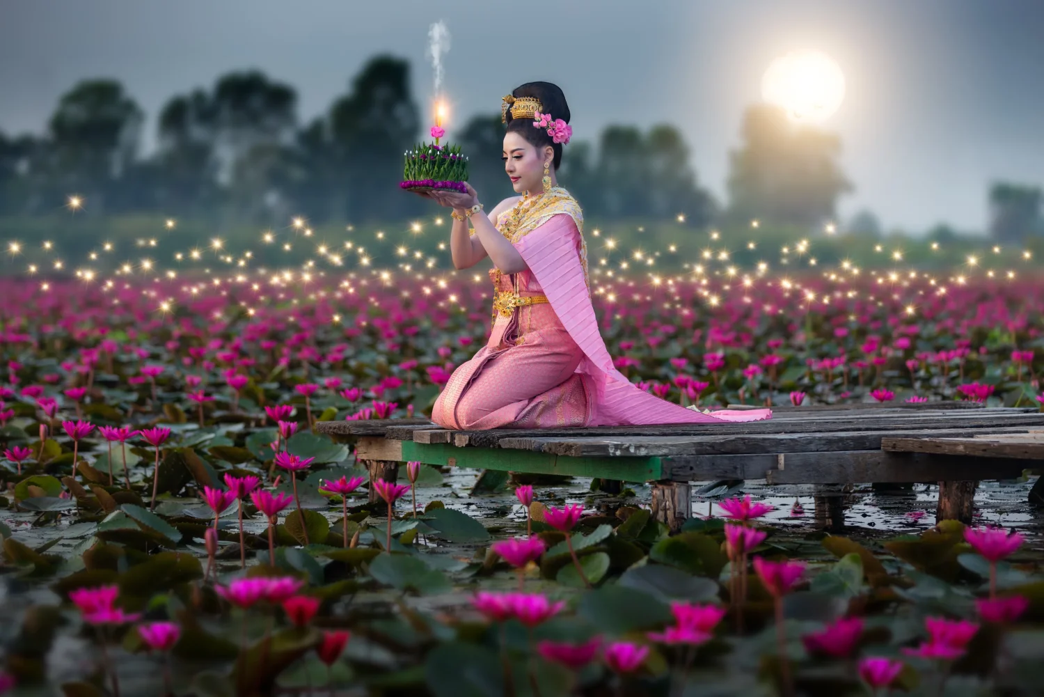 Ensuite, en début d’après-midi, rencontre avec votre guide francophone, et partez à la découverte en pirogue ‘longue-queue’ des canaux (klongs) de Thonburi, puis visite du spectaculaire temple Wat Arun au bord du fleuve Chao Praya. Puis terminez par la visite au marché aux fleurs.